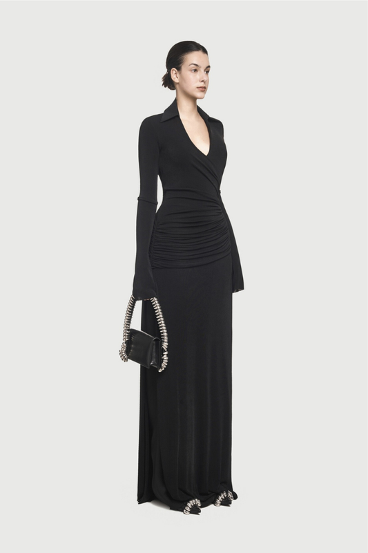 KAYLEE DRAPELİ MAKSİ SİYAH ELBİSE