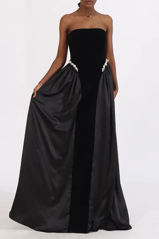 REGİNA SİYAH KADİFE İNCİLİ UZUN ELBİSE