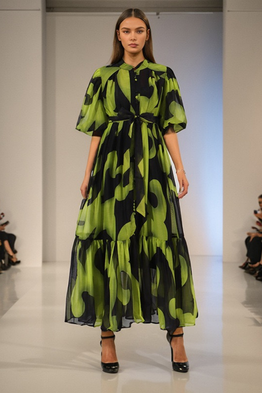 WENDY BÜYÜK FİYONKLU MİDİ ELBİSE