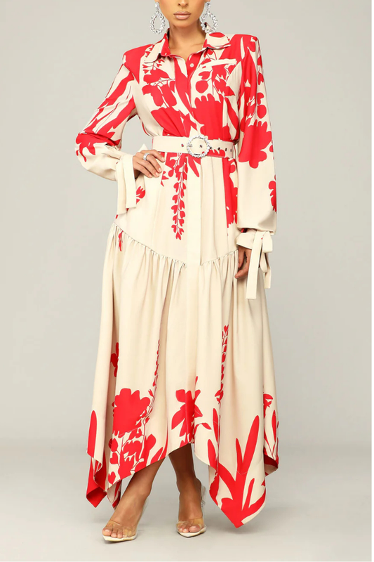 REYNA KEMERLİ ÇİÇEKLİ UZUN ELBİSE