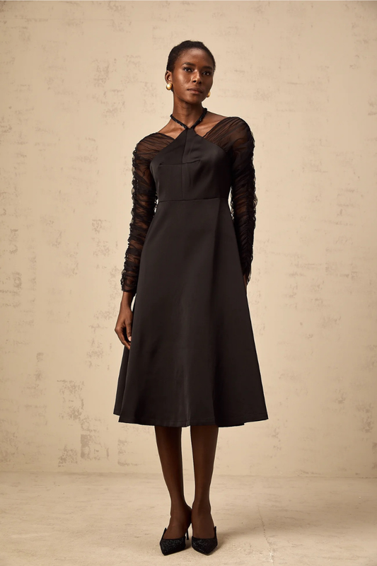 RİLEY HALTER YAKA MİDİ ELBİSE