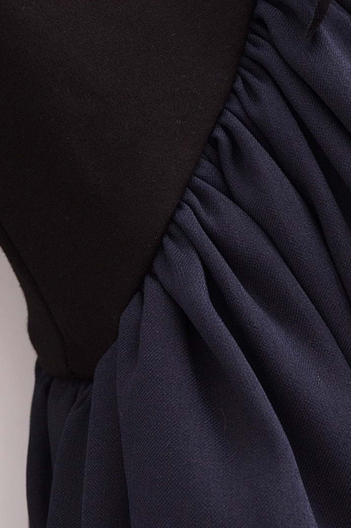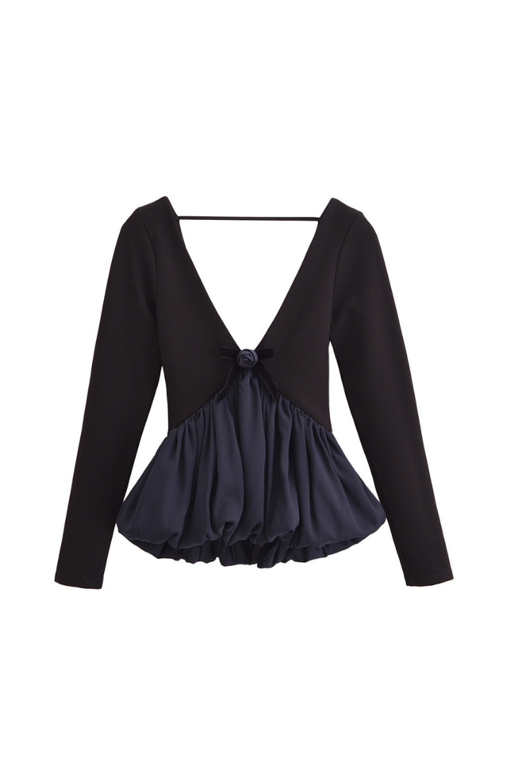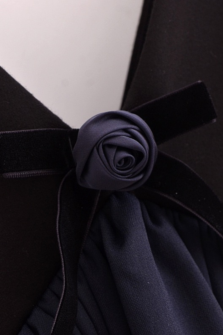 -Detaylar: Uzun kollu, ön ve arka derin V yaka, göğüs ortasında çiçek süs detay, etek etek kısmı pileli ve balon kesim