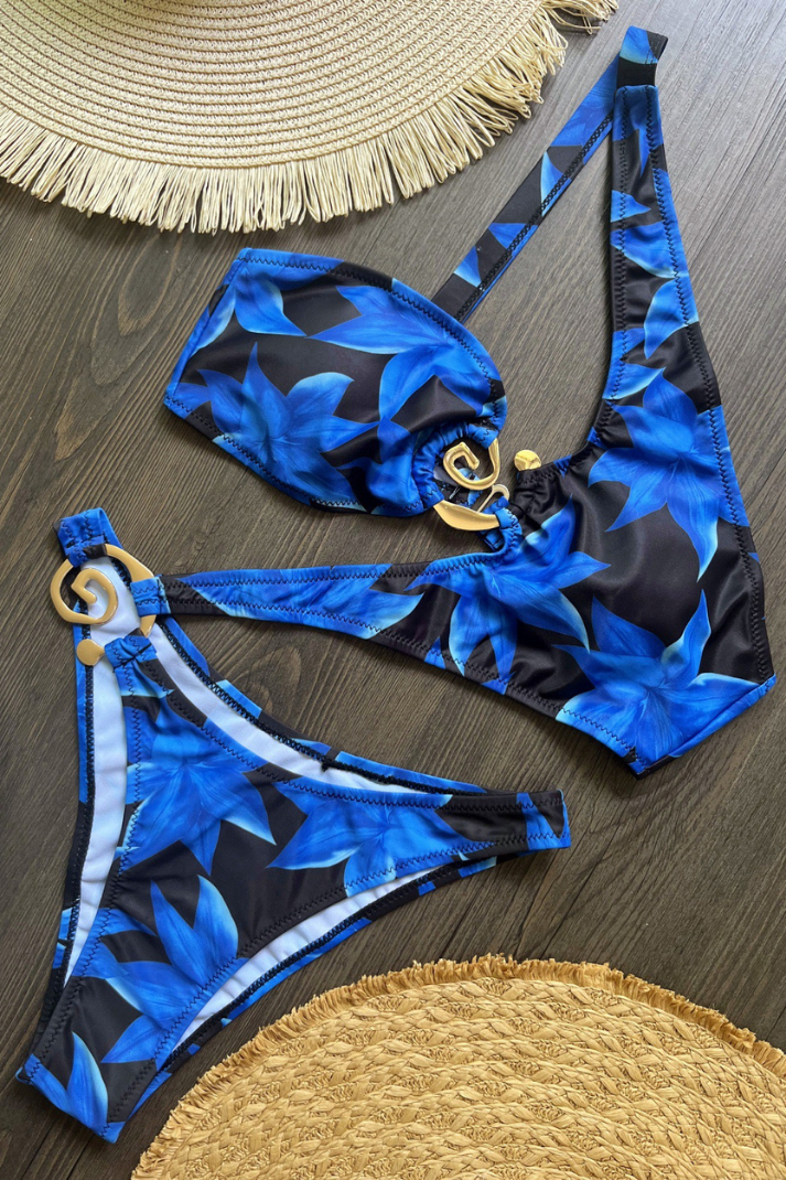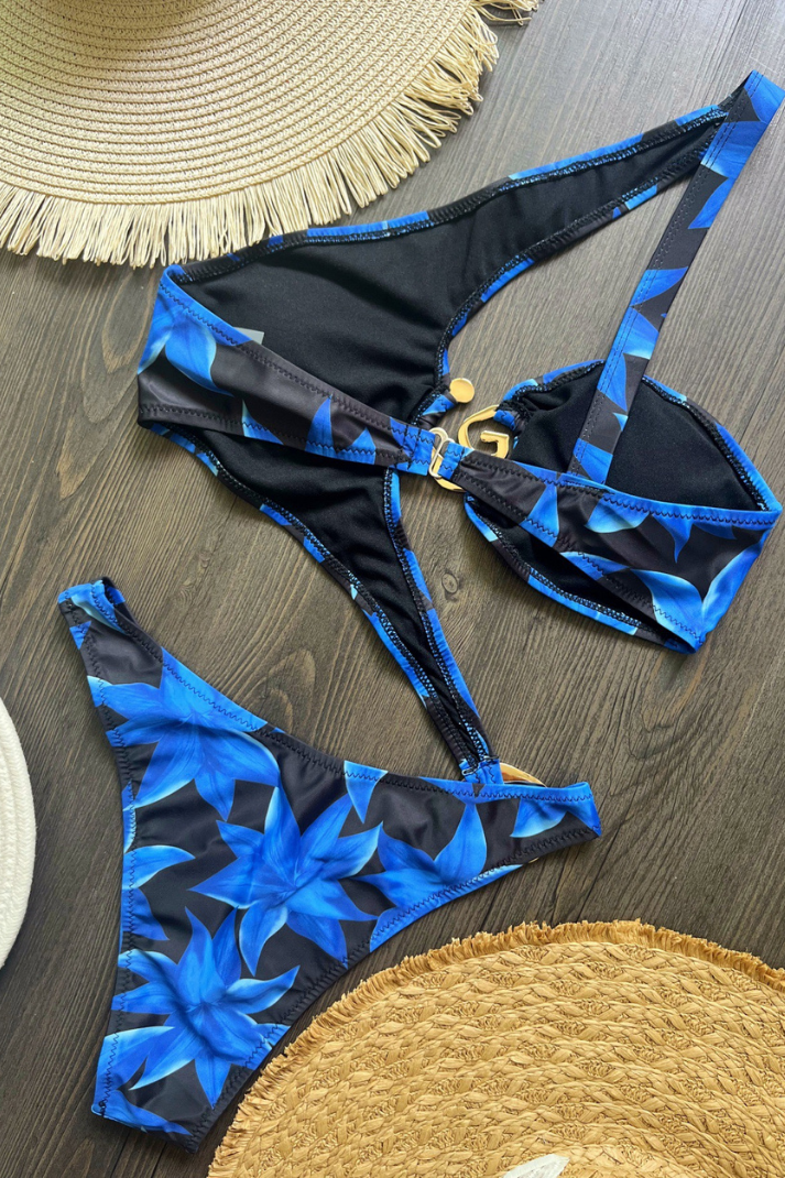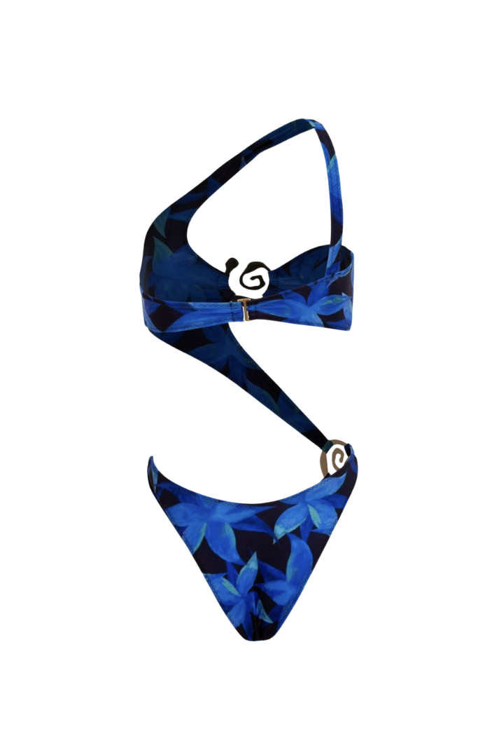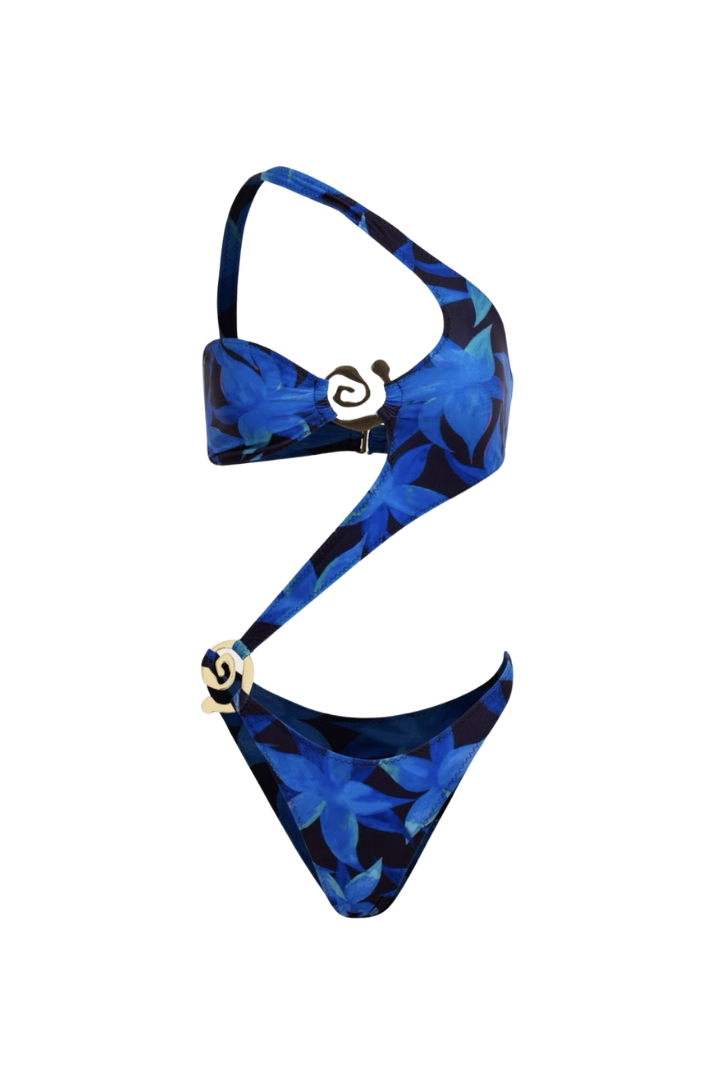 -Stil: Tek omuz, metal aksesuarlı tek parça mayo