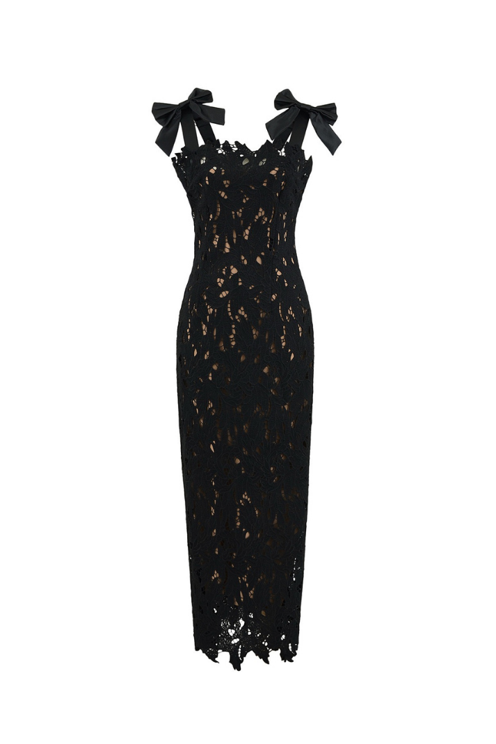 -Stil: Çiçek nakışlı dantel uzun elbise