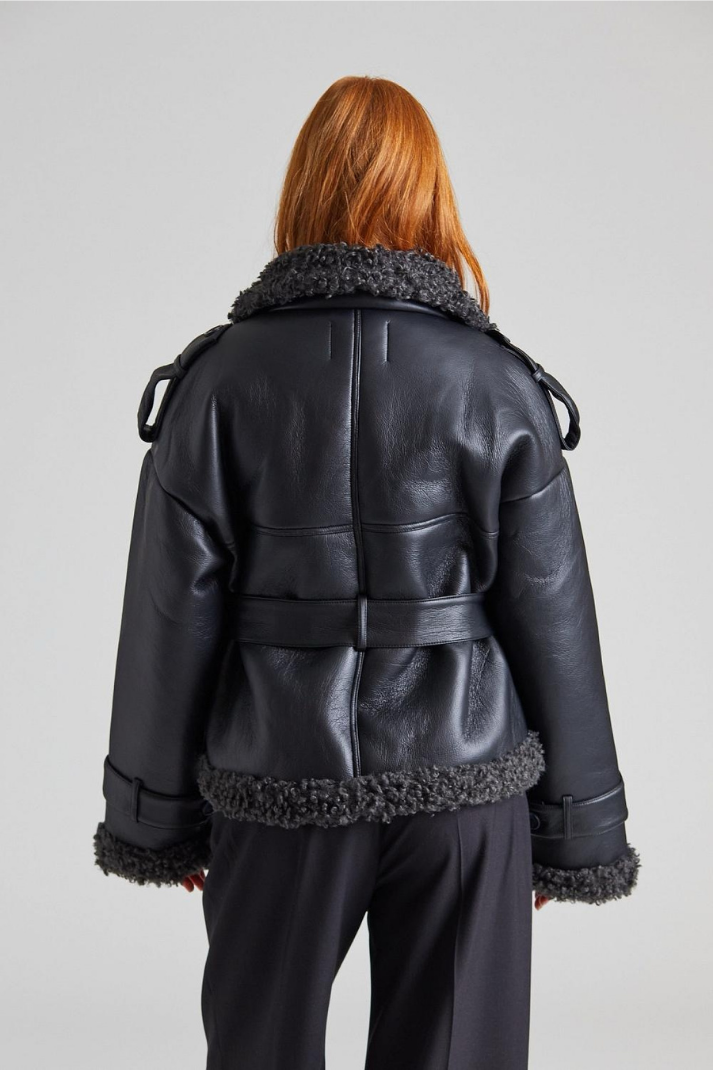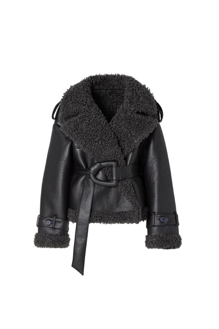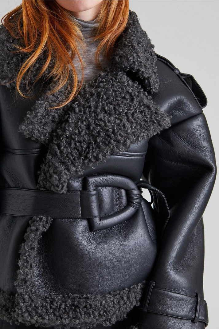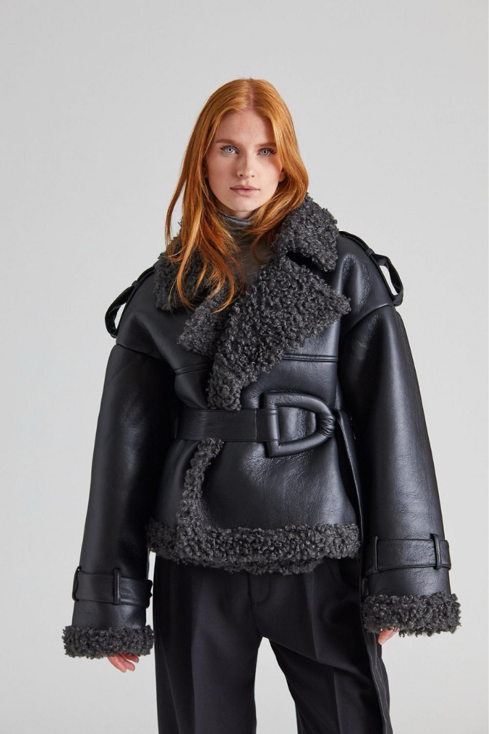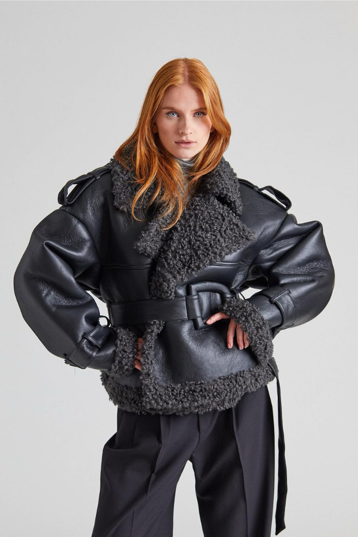 -Stil: İçi kürklü ve kemerli suni deri ceket