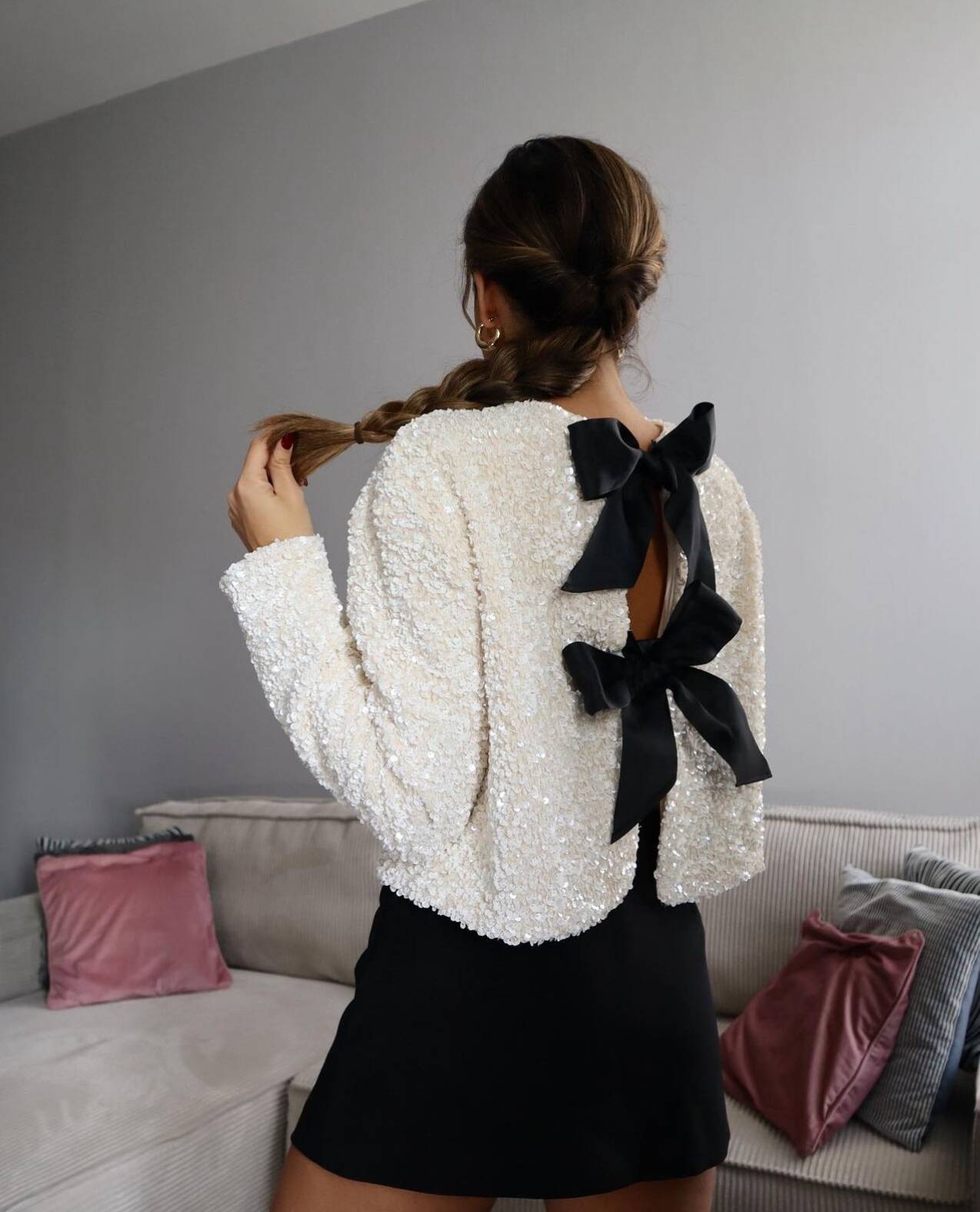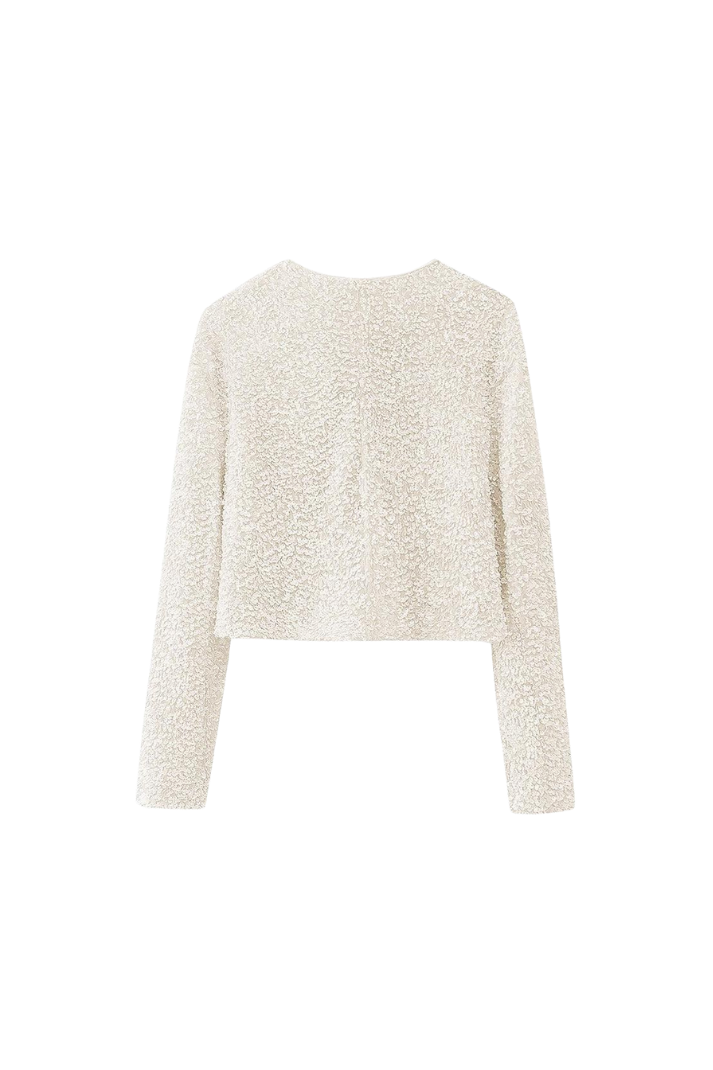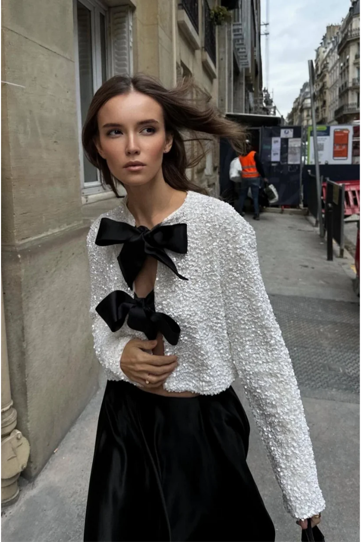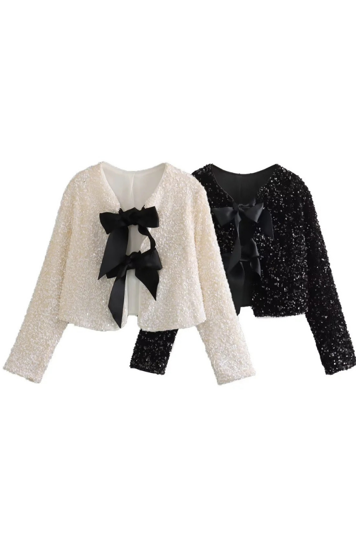 Bella Pullu Ceket, her durum için mükemmel olan bir tasarıma sahiptir. Payetli olması cekete ihtişam katarken geniş kurdeleleri benzersiz görünüm için hem önden bağlayarak hem de arkadan bağlayarak kullanımıza hazır…
