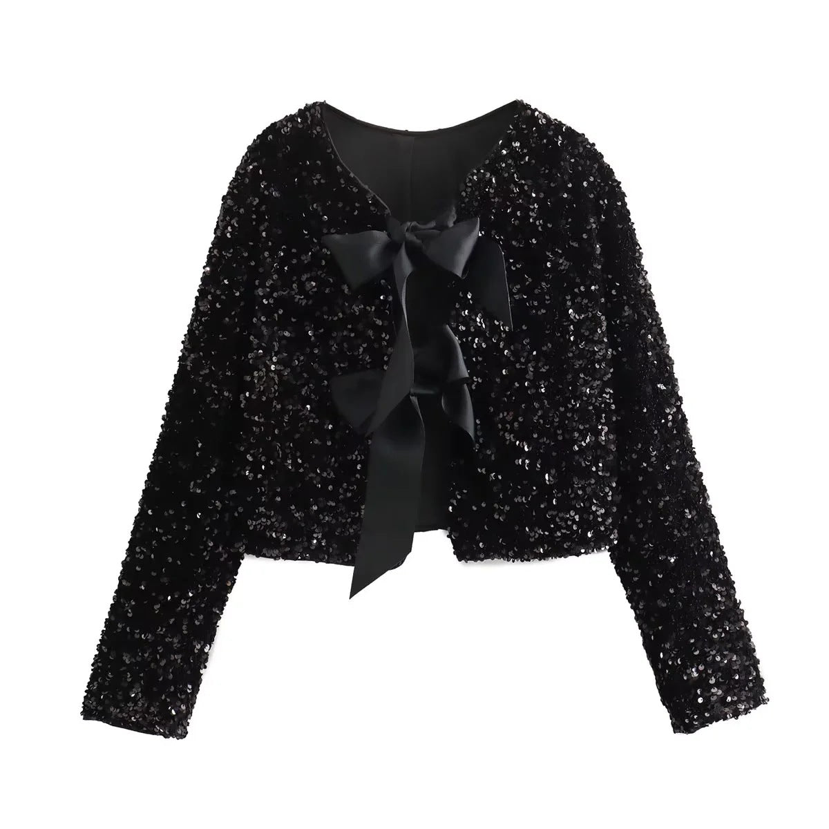 Bella Pullu Ceket, her durum için mükemmel olan bir tasarıma sahiptir. Payetli olması cekete ihtişam katarken geniş kurdeleleri benzersiz görünüm için hem önden bağlayarak hem de arkadan bağlayarak kullanımıza hazır…