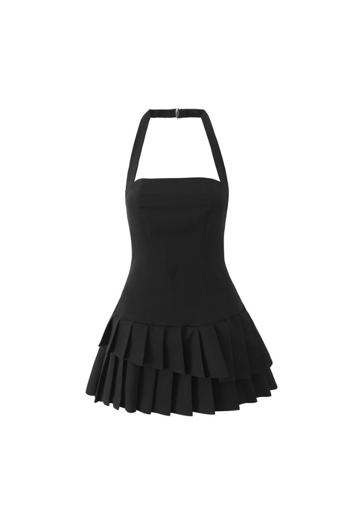 BERRY PİLELİ SİYAH MİNİ ELBİSE
