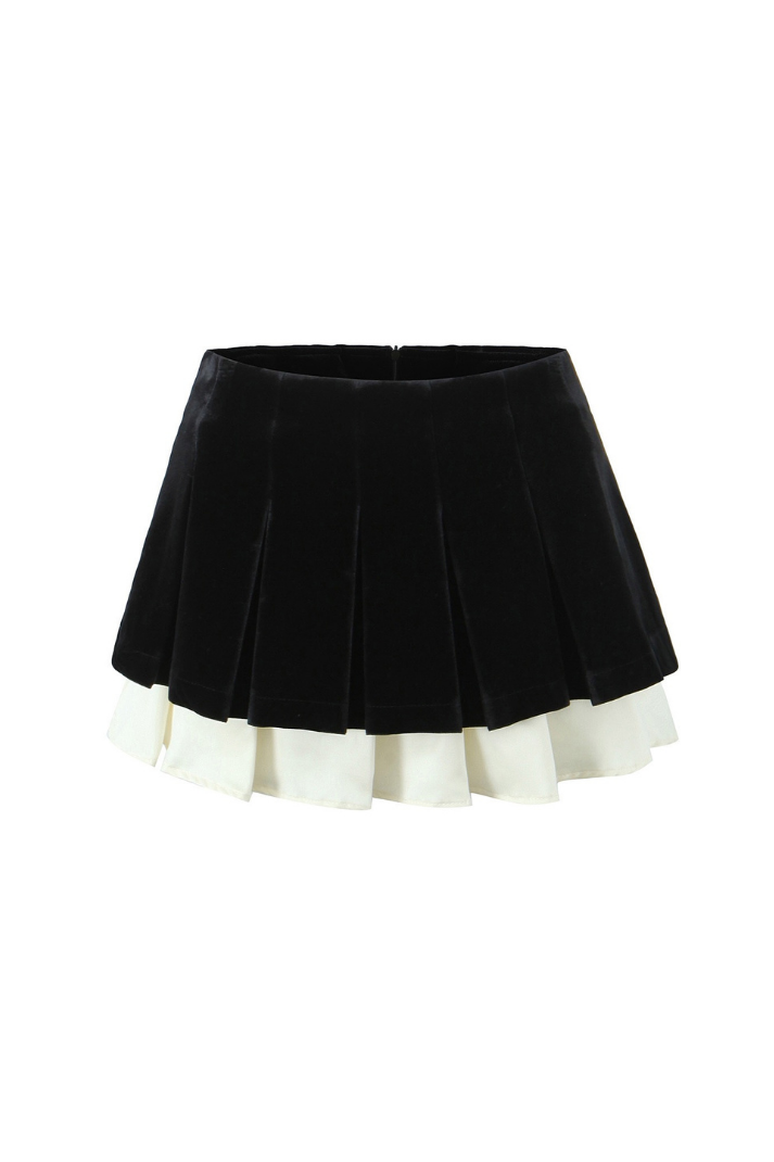 CARA RENK BLOKLU KADİFE MİNİ ETEK