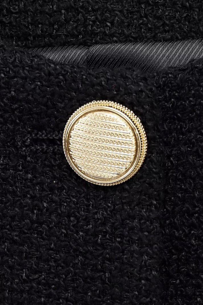 -Detaylar: Kolsuz, yuvarlak yaka, çoklu düğme kapama, ön kapaklı cepler, kabartmalı gold düğmeler, astarlı