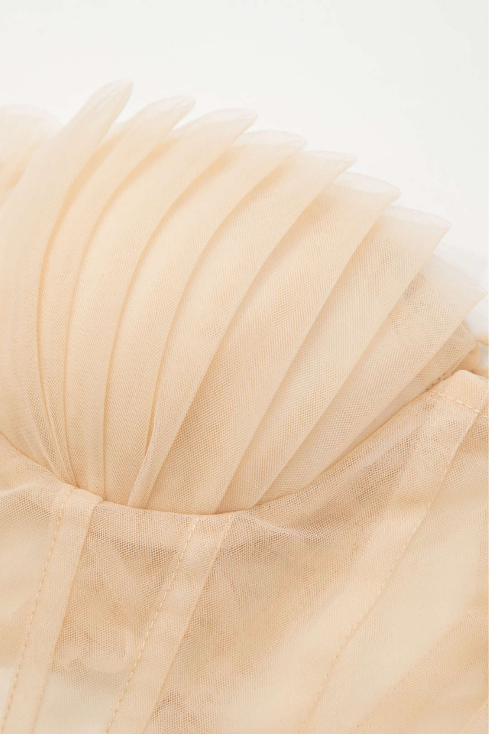 -Detaylar: Straplez, göğüslerde pileli tasarım, arkası bağcıklı, korse formda