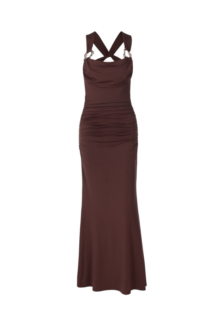 -Stil: Askılı aksesuarlı drapeli uzun elbise