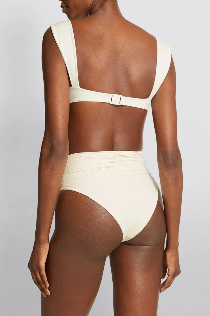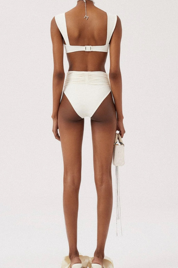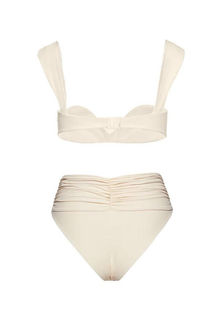 -Detaylar: Bikini Üst: Askılı, çıkarılabilir göğüs pedleri, arkada kopça kapama detay Bikini Alt: Yüksek bel, çiçek aplikeli, bel kısmı büzgülü