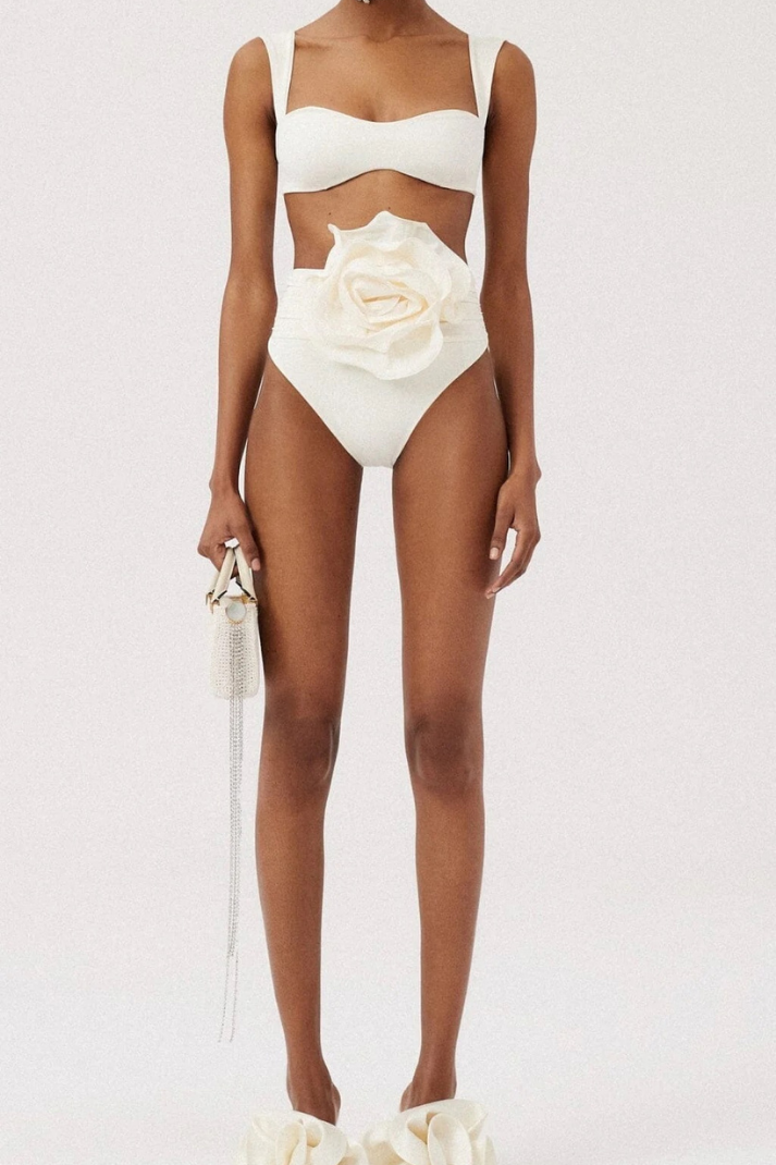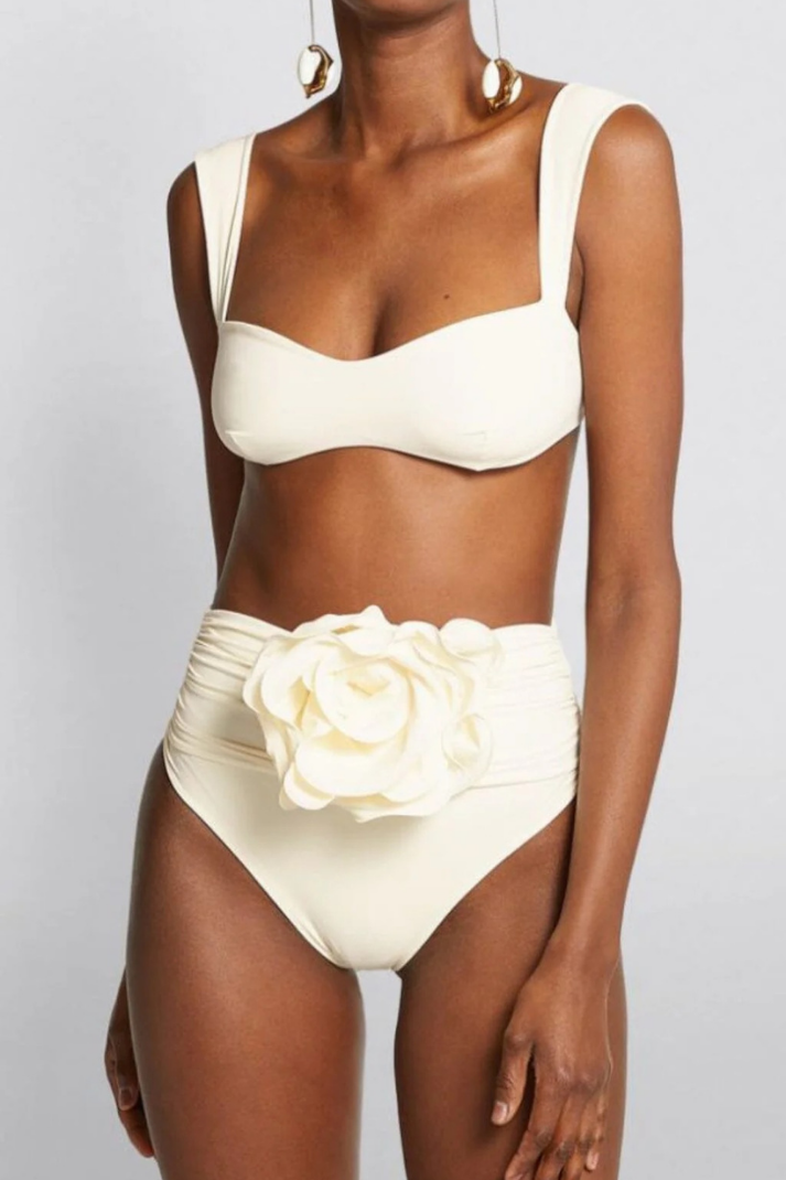 -Stil: Askılı üst ve yüksek bel gül detaylı alt bikini takımı