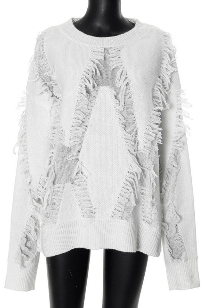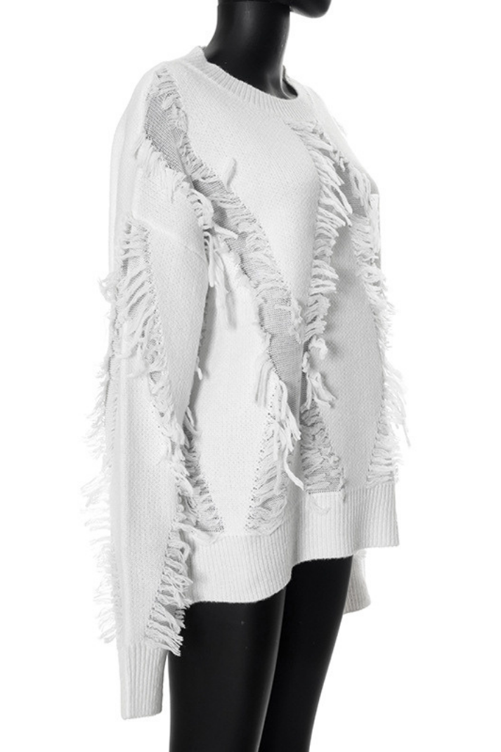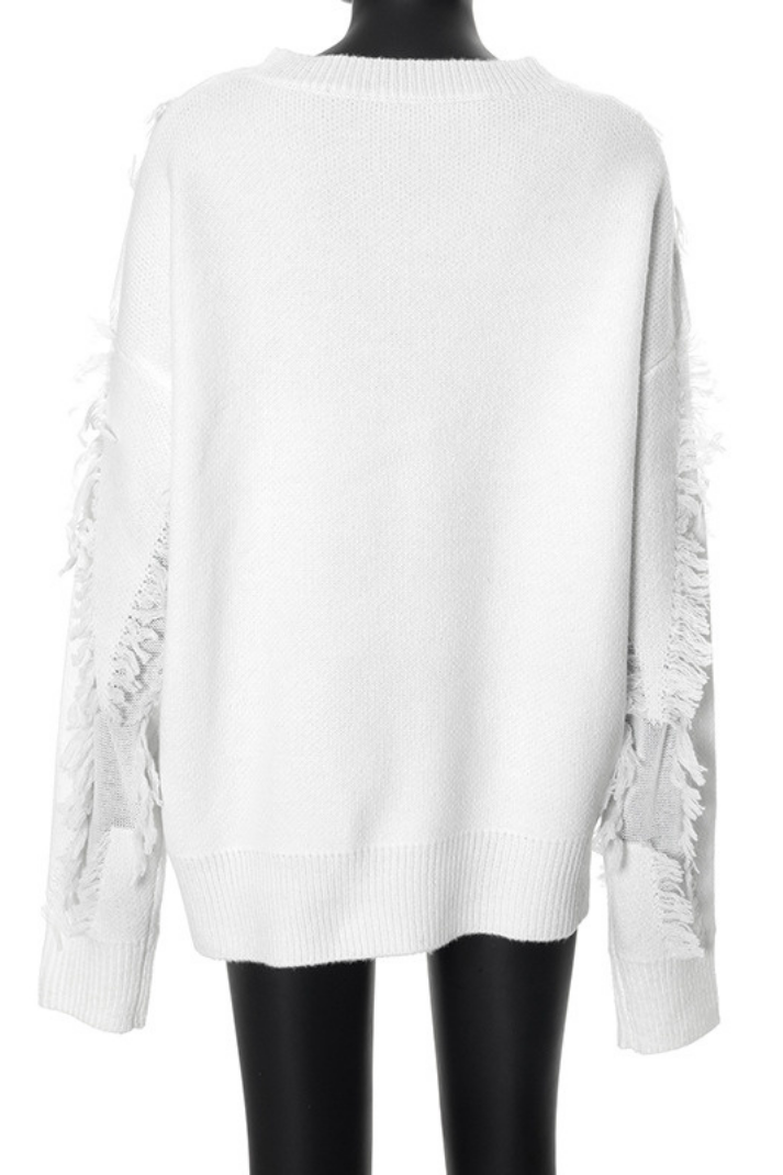 -Detaylar:Uzun kollu, yuvarlak yaka, bol kesim, düşük omuz, saçaklı