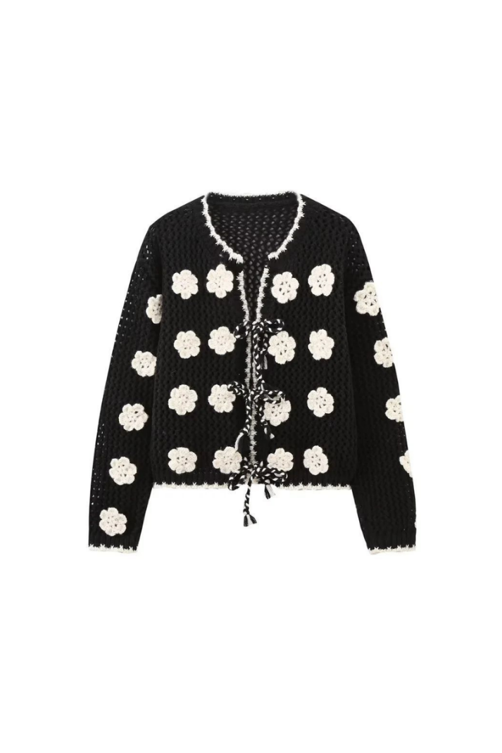 Lotus Örme Çiçekli Hırka, kabartmalı çiçek eklemeleriyle romantik bir parça…