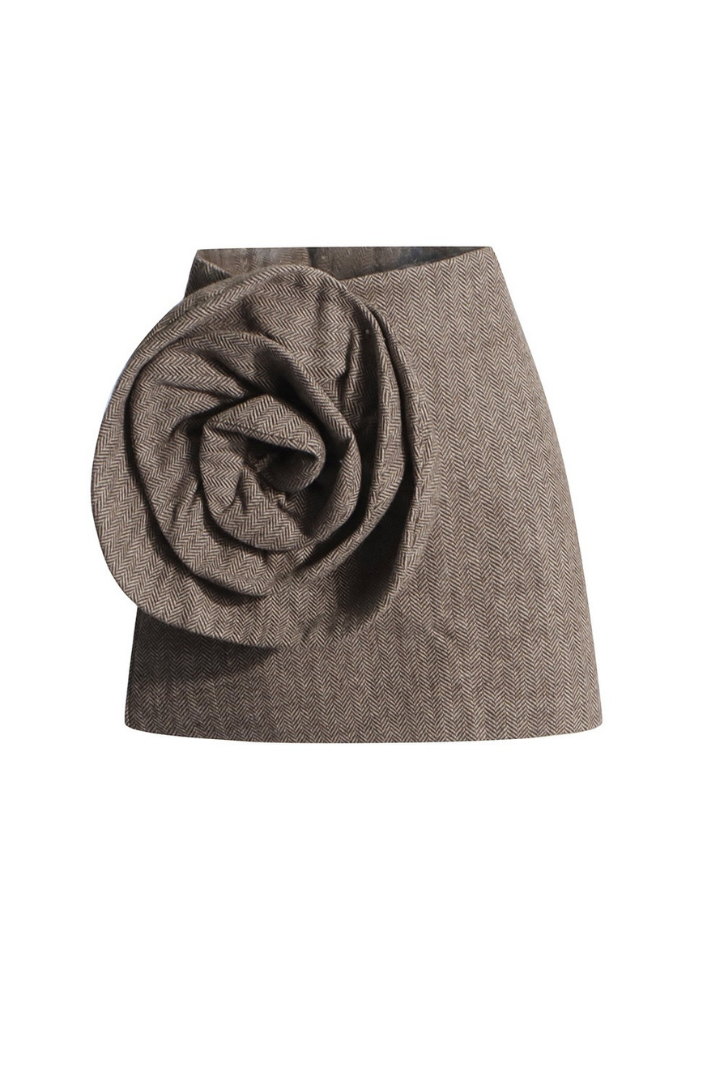 -Stil: Balıksırtı kumaş üç boyutlu çiçek detaylı mini etek