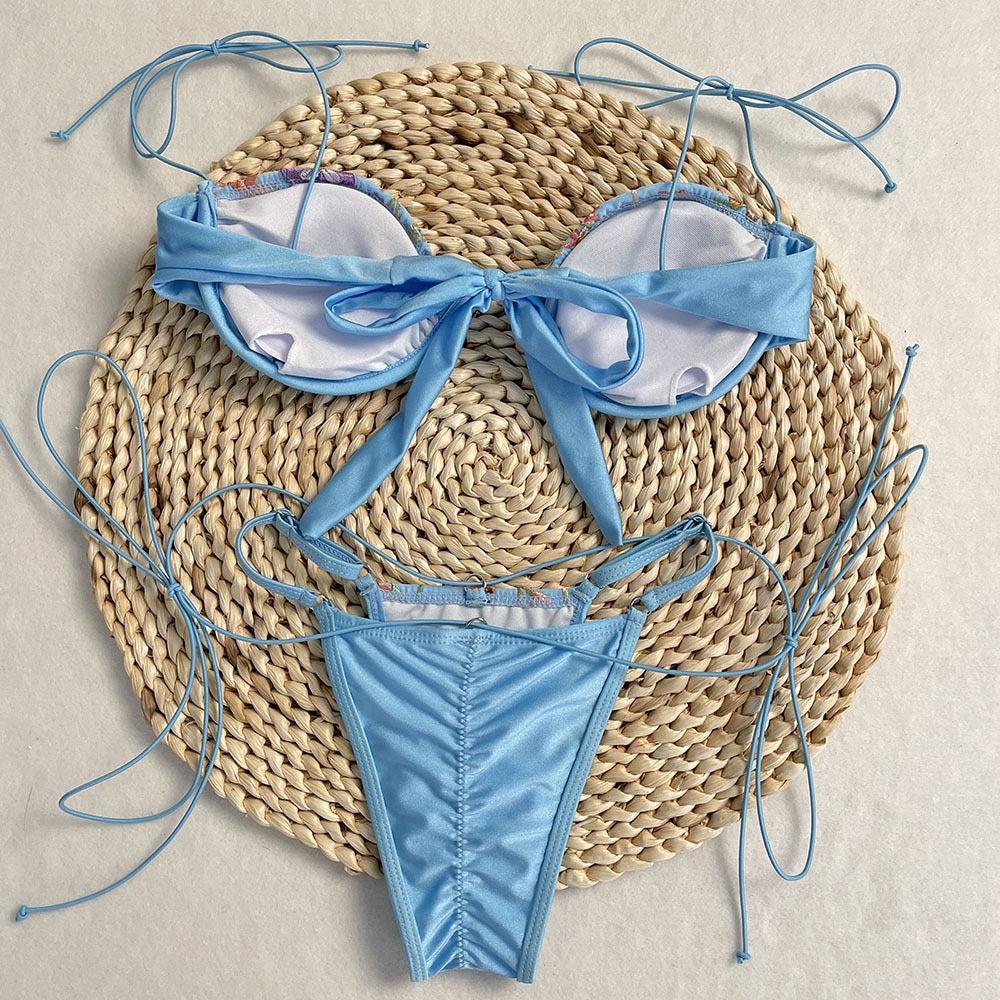 SAKURA NAKIŞLI MAVİ BİKİNİ TAKIM