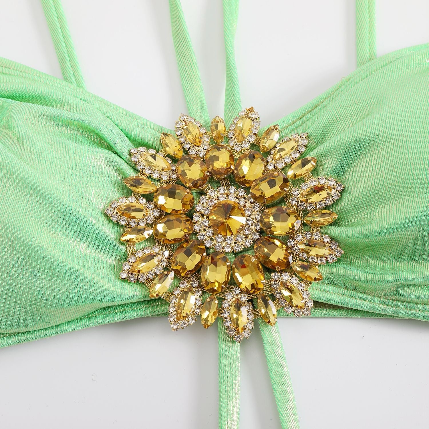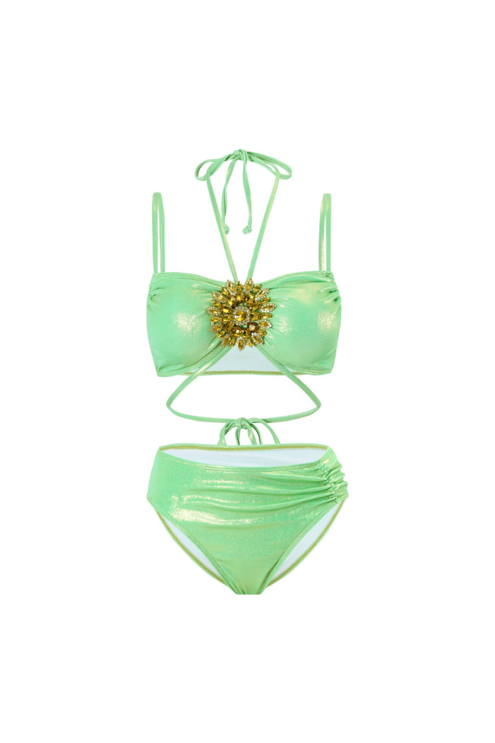 -Stil: Sedefli dokulu taş süslemeli bikini takımı ve etek set