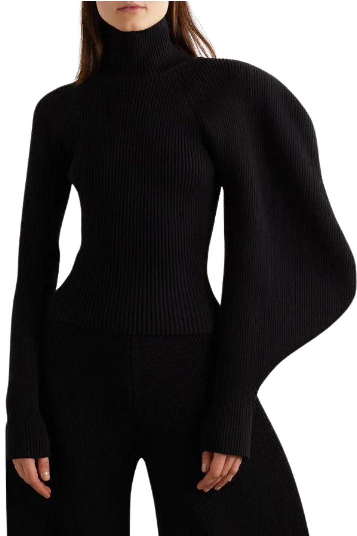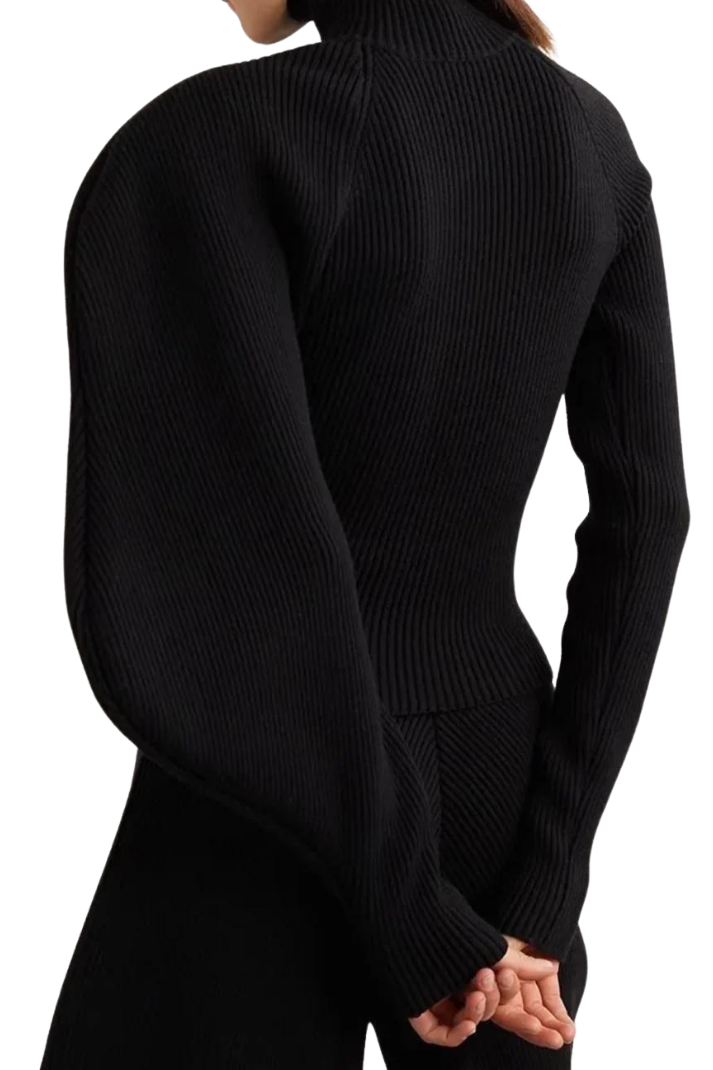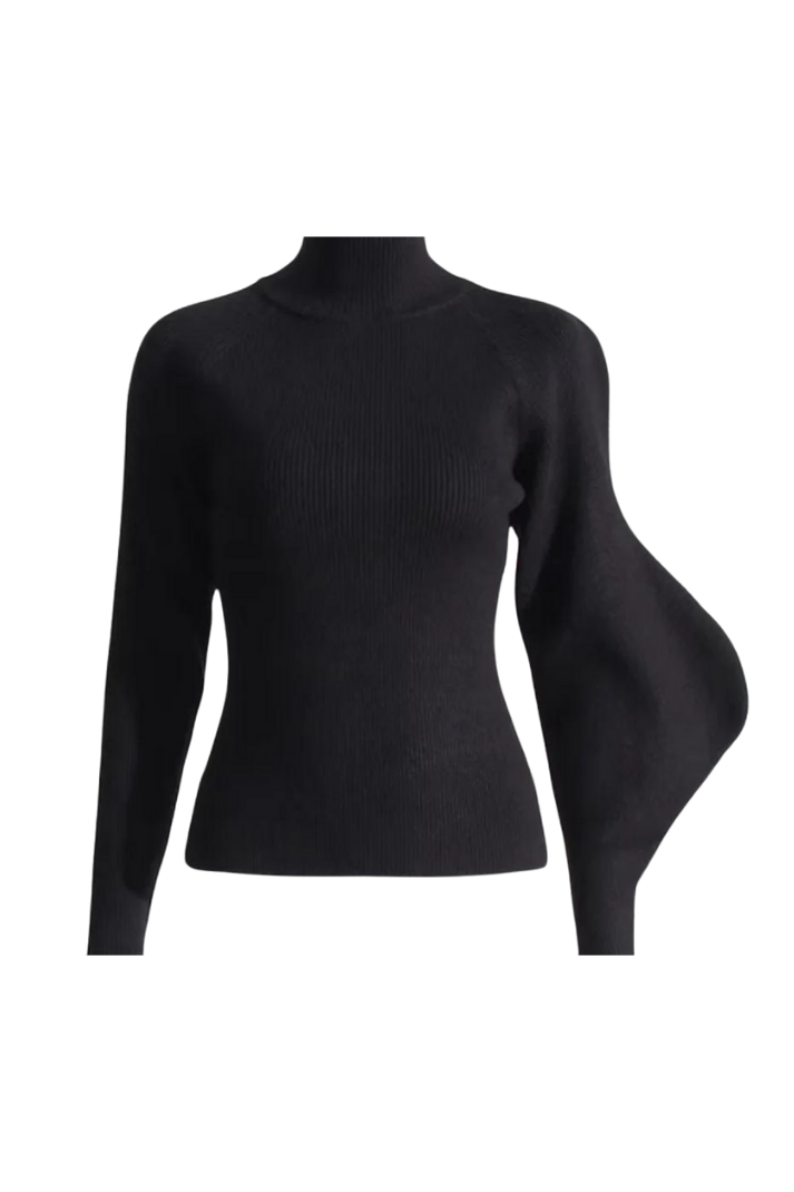 -Detaylar: Uzun kollu, balıkçı yaka, tek kolu kabarık, esnek yapıda
