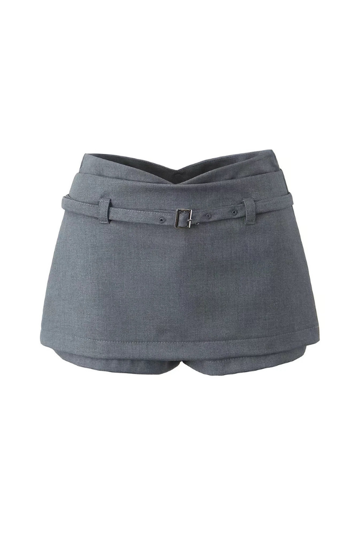 TEGAN KEMERLİ GRİ ŞORT ETEK